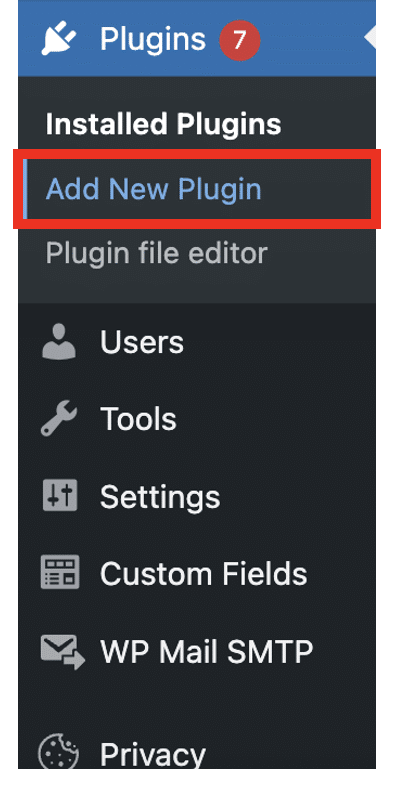 Navigate to the ‘Add New Plugin’ section on WordPress, which can be found within ‘Plugins’.