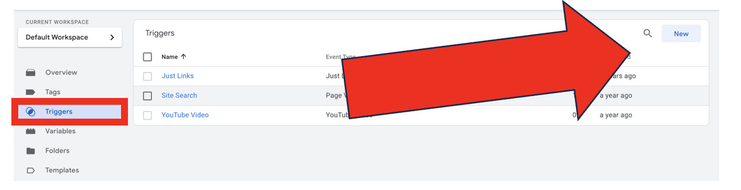 The next stage of setting up Enhanced Conversions involves creating triggers. To do so, navigate to the ‘Triggers’ section from your toolbar. Next, choose ‘New’.