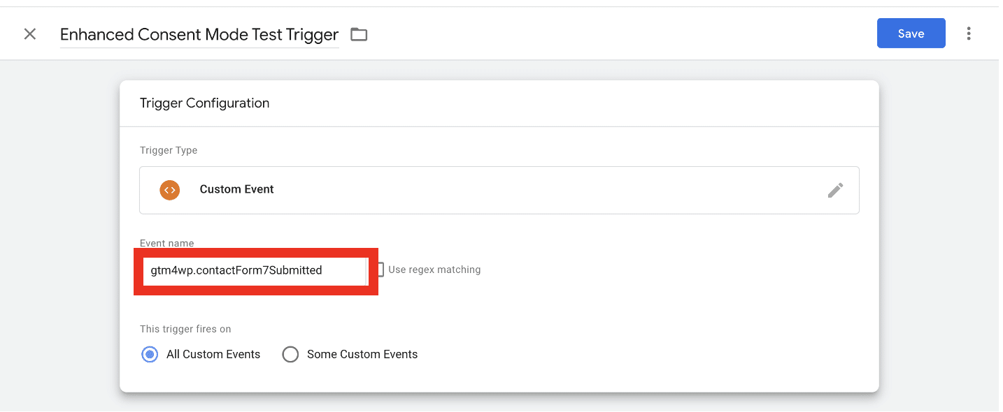 Under ‘Event name’ paste the data layer that you copied earlier. Then, save the trigger.