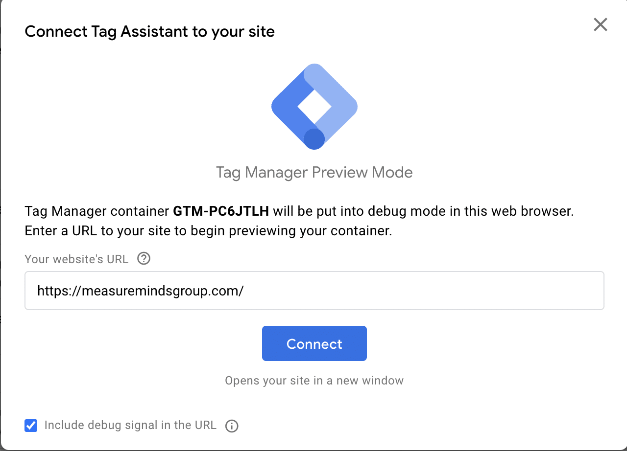From within GTM, head to preview mode. To do so, choose ‘Preview’ from the top of your workspace.
