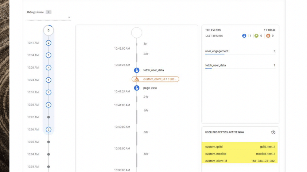 If you set this up correctly the custom GCLID, the MS click ID, and the custom client ID will all show up as user properties.