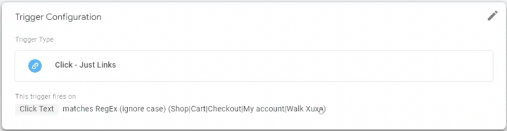 In this scenario, the primary nav clicked worked, but the RegEx didn’t work. This is because ‘comercio’ doesn’t match the original text. A better approach is to use a CSS selector. This would mean that anything on the primary menu container is captured.