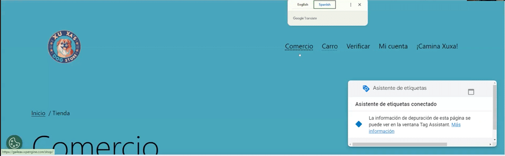 Alternatively, a user might be translating the page. As you can see in the example below ‘Shop’ is now ‘Comercio’.