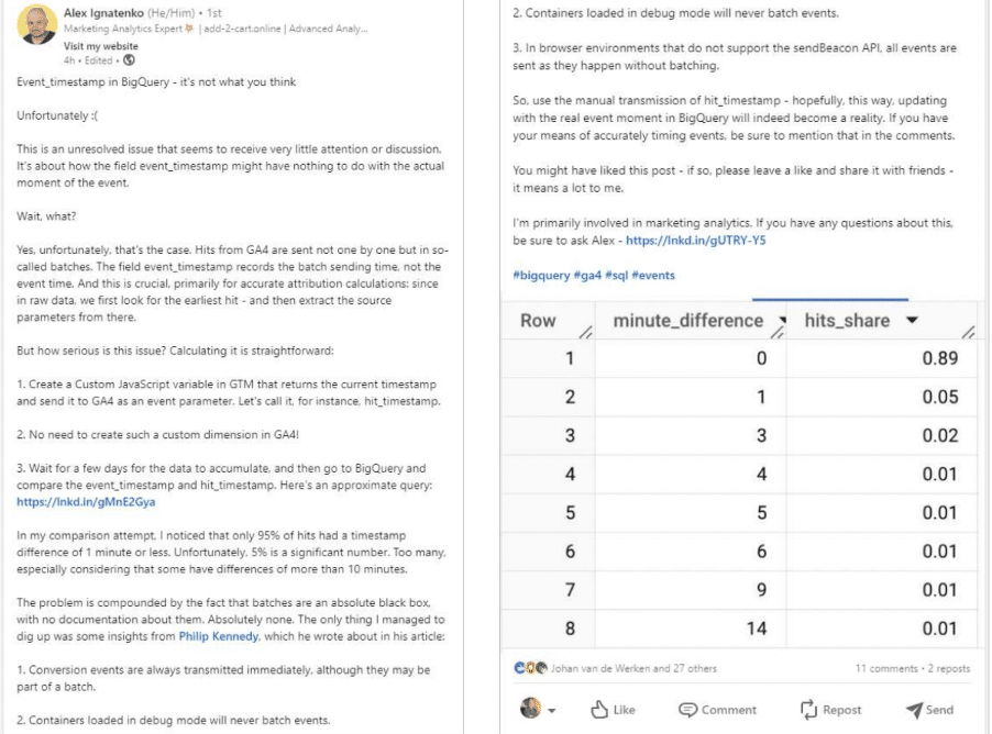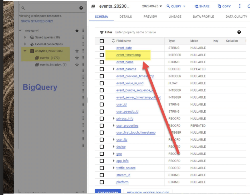 The hit_timestamp is added to each event in GA4. At this point, you might be thinking ‘This information is all available in BigQuery via the event_timestamp’. So, why do you need hit_timestamp?