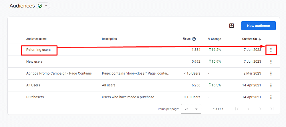 After setting up an audience, you may want to view its details, edit its attributes, duplicate it for similar tracking, or even delete it altogether. Here’s a step-by-step guide to assist you in these tasks: