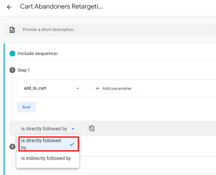 GA4 offers a distinctive feature that allows marketers to create an audience based on specific sequences and exclusions to target these potential converters.For example, you can identify and target users who added a product to their cart but have yet to purchase within a determined time.