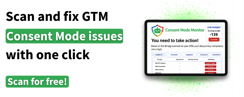 For extra security, you can also use our Consent Mode Monitor. This scans tags on your site to look for missing or incorrect consent. Once issues are identified, you can fix them in a single click. Best of all, it’s free to access.